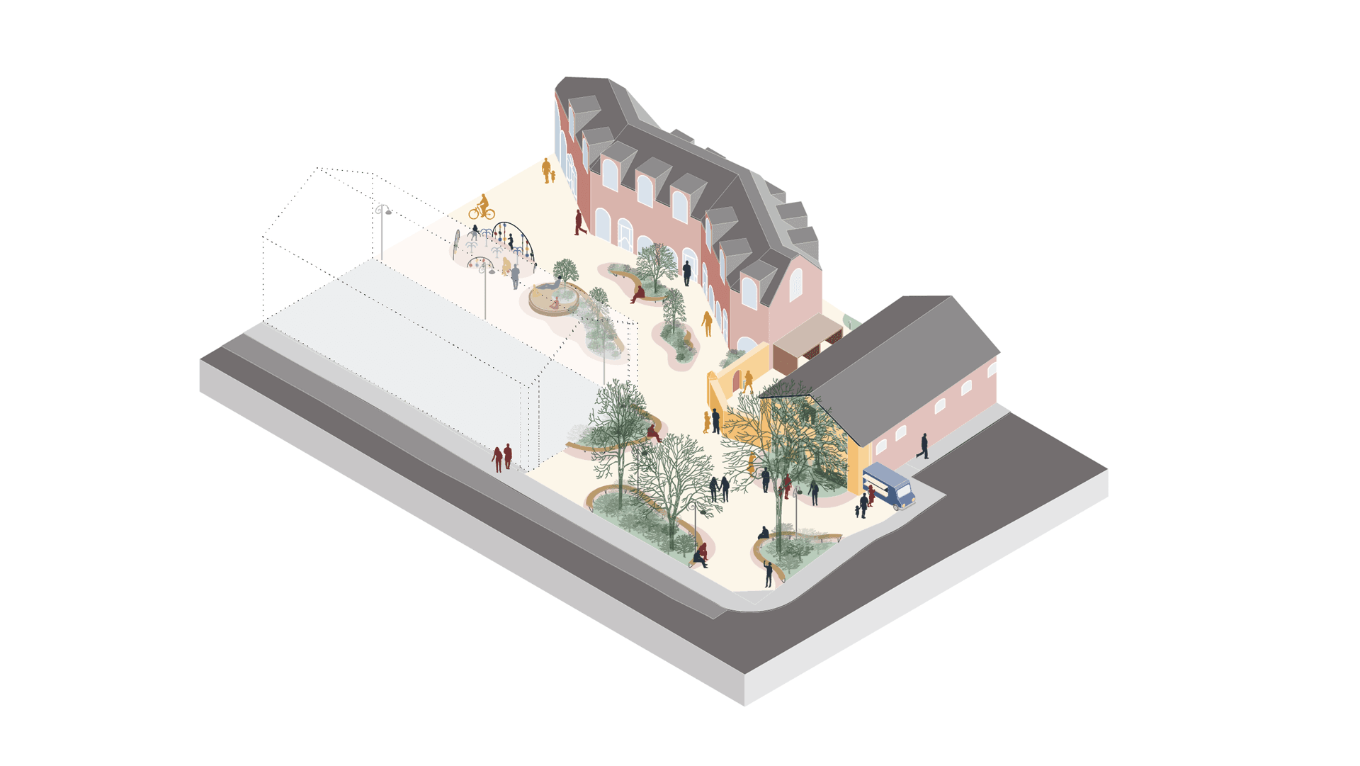 Furthermore, this project focuses on a particular area at one of the main entrances of Christiania, covering about 16,000 sqm. The goal is to design a new entrance for visitors while serving as a public space for locals, maintaining private areas for Christianites and integrating new co-housing communities into the future building plots.