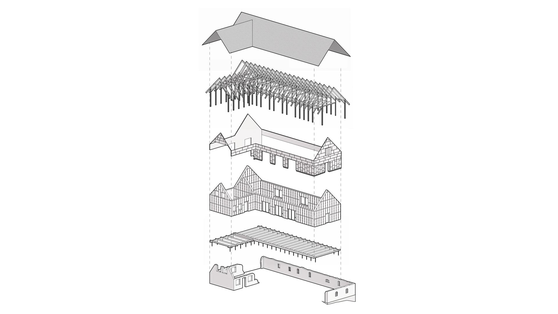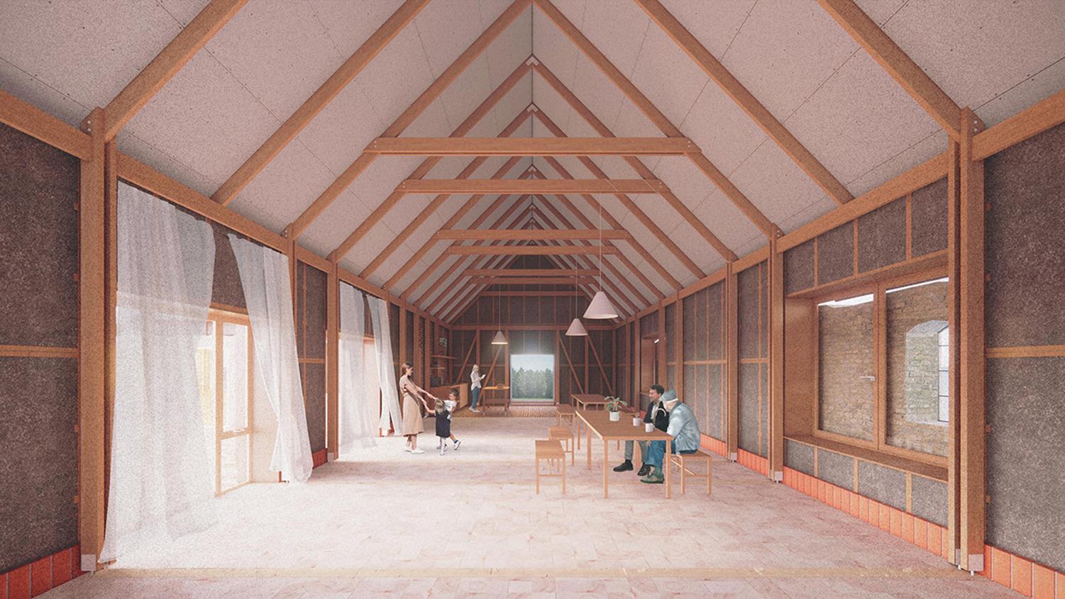 The thesis is manifested through a small-scale architectural project, the transformation of a ruin on the Danish Island, Langeland, that serves as an example of how to apply the framework and proves the effect of the strategic and design principles. The aesthetic approach of the framework and subsequent design seeks to redefine user expectations, promoting consumption that aligns with the Paris agreement. Furthermore, the design showcases how overlooked aesthetic potentials within materials can drive sustainable building practices. Using on-site, reused, biogenic materials and building process byproducts, the project unifies sufficiency and efficiency principles.