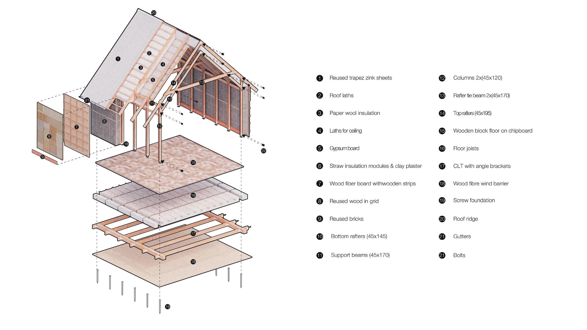 This master thesis explores the integration of sufficiency measures as a crucial component in the shift to a sustainable architecture practice, which is often achieved through efficiency measures. Through the research of current design principles in sustainable architecture and case studies, this thesis develops a framework that presents strategic and design principles that can achieve the objective of including sufficiency in architectural design. With the use of an integrated design approach that includes sketching, modelling, life cycle assessments, simulations of light and structures, this thesis conceptualizes and exemplifies how efficiency, sufficiency and sufficiency aesthetics can be a part of a sustainable architectural design process.
