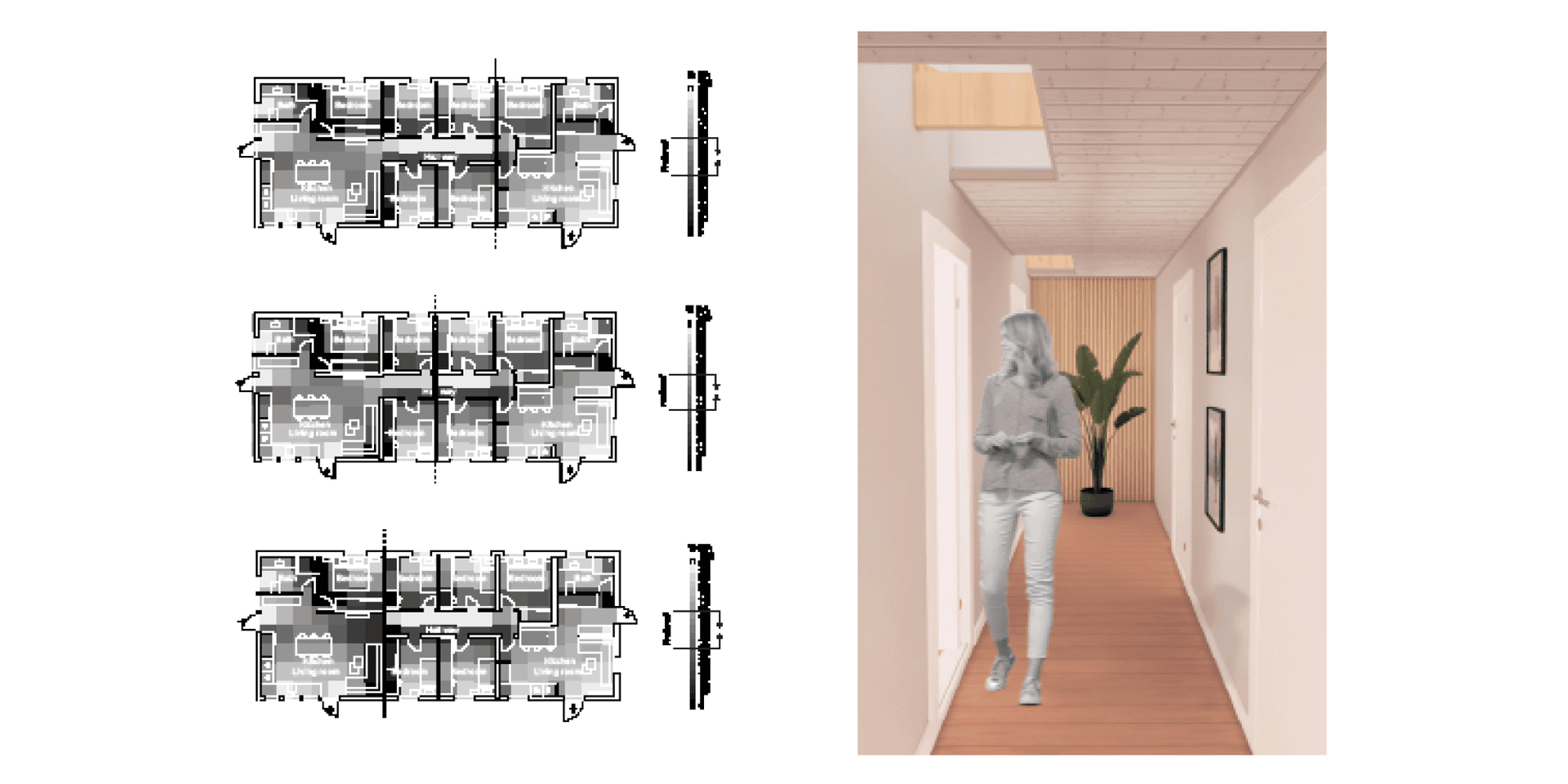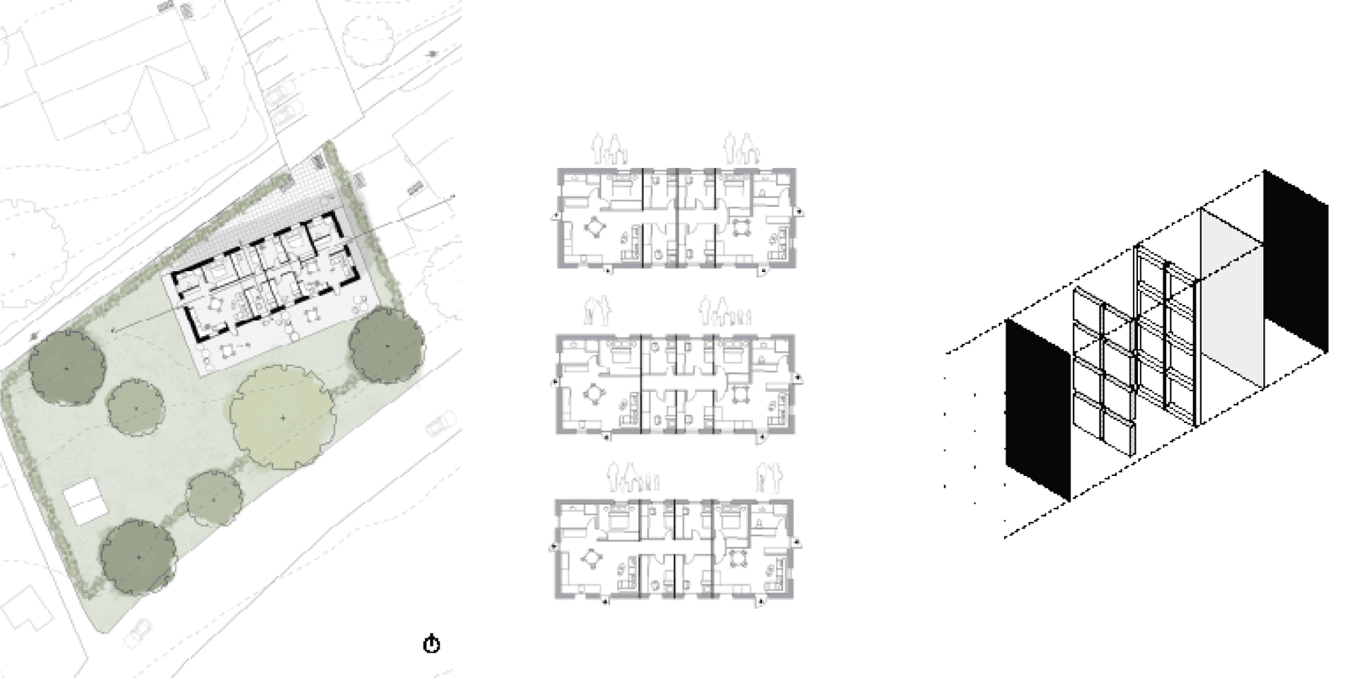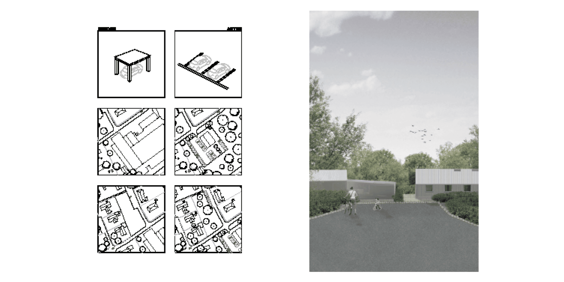 Dette projekt undersøger, hvordan eksisterende parcelhuse kan omdannes for at understøtte en højere tæthed og øget fællesskab – uden at gå på kompromis med komfort eller arkitektonisk kvalitet. Casen har taget udgangspunkt i Åstrupskrænten, hvor der er set nærmere på et enkelt hus, som er blevet opdelt i mindre enheder, hvilket gør det muligt for flere husstande at dele én bolig. For at sikre, at beboerne stadig har adgang til rummelige opholdsarealer, er der tilføjet et fælleshus, som tilbyder ekstra kvadratmeter til fælles brug – og dermed opretholder samme velfærdsniveau som før, men på en mere bæredygtig og kollektiv måde. Derudover er der arbejdet med en energioptimering af huset, som bibeholder husets karakter.