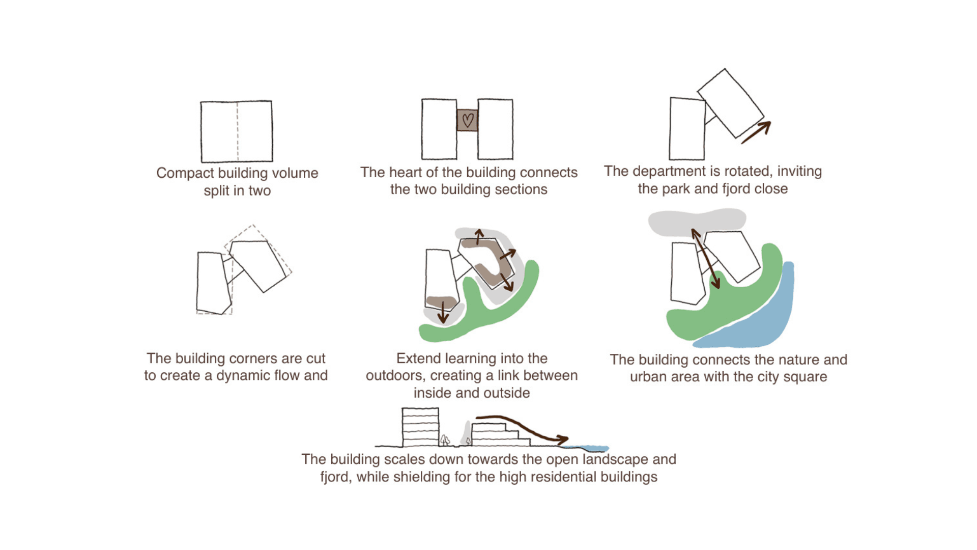 Through an observational analysis of Horsens State Prison and Randers State School, several aspects were identified that possess both architectural and psychological characteristics. These aspects culminate into a list of design criteria supporting a more informed decision making process. These insights will guide the design of the new Stigsborg School, through an integrated design methodology - combining architectural practice with human-centered research. Emphasis is placed on children’s developmental needs, indoor climate, and sensory engagement, aiming to translate theoretical findings into spatial strategies that support autonomy, curiosity, and well-being. The finalized architectural design proposal reflects a holistic approach, combining traditional and modern educational typologies and responding to the specific site. Furthermore the design addresses the aspects driven from the observational analysis, integrating both architectural and psychological considerations into a cohesive spatial solution.