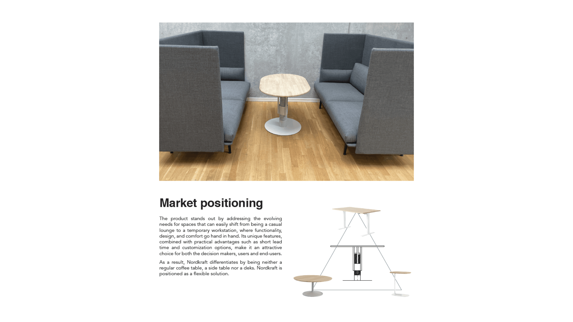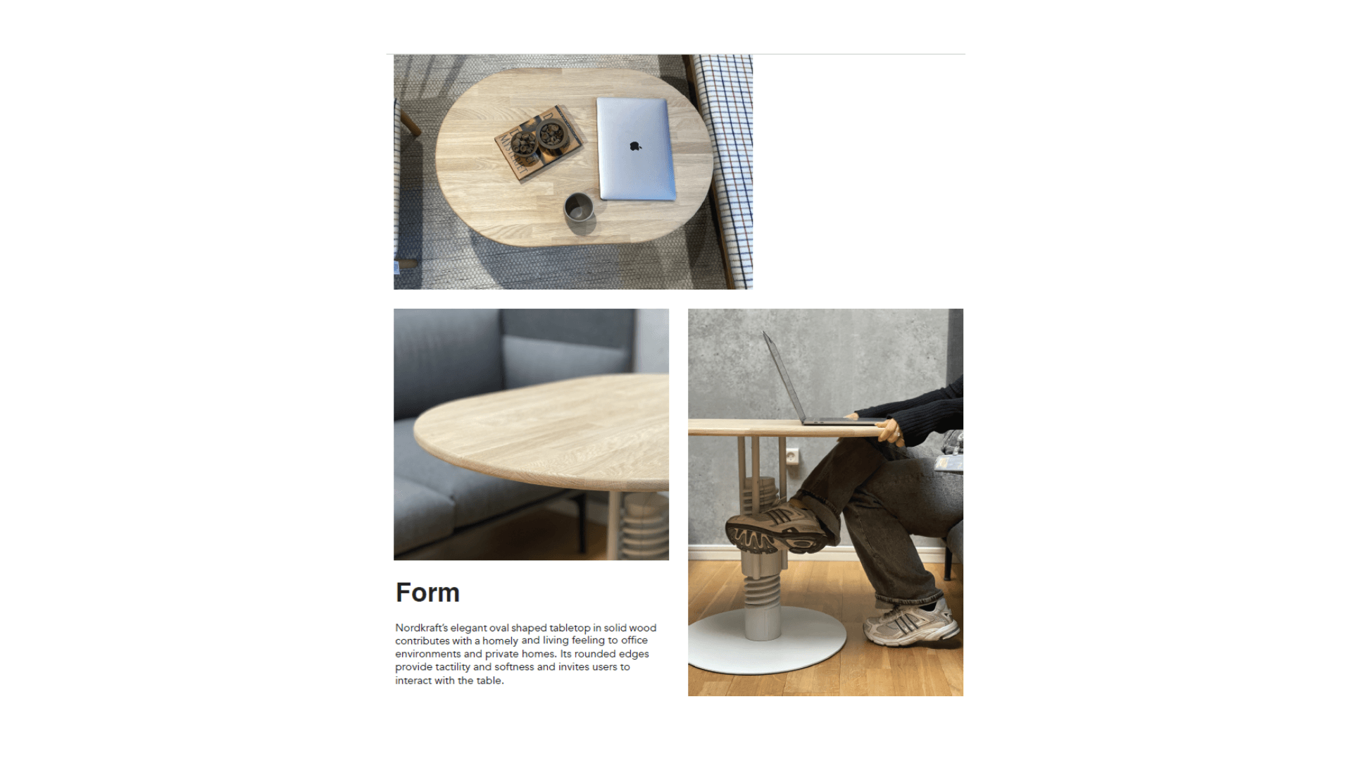 Nordkraft is a flexible, height-adjustable coffee table created specifically to support ergonomic work in soft spaces. It bridges the gap between comfort and function, enabling employees to work safely and effectively from sofas, lounge chairs, or informal meeting areas. Nordkraft is particularly suited for hotdesking environments, where flexibility and adaptability are key.