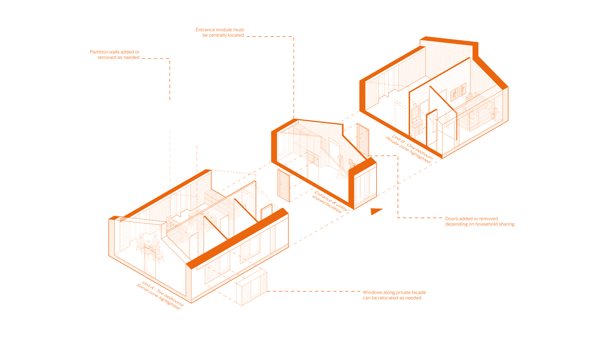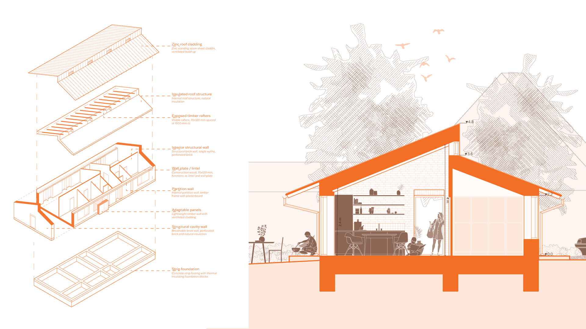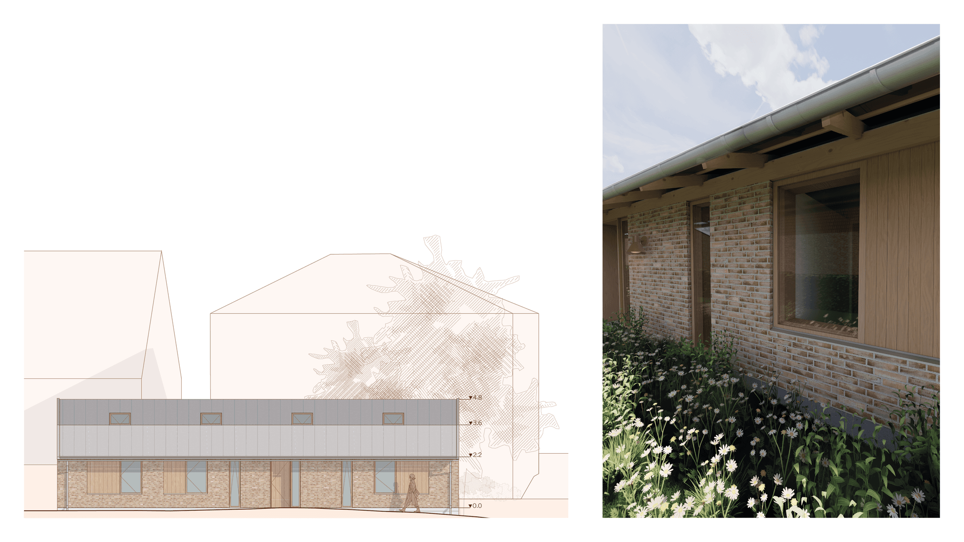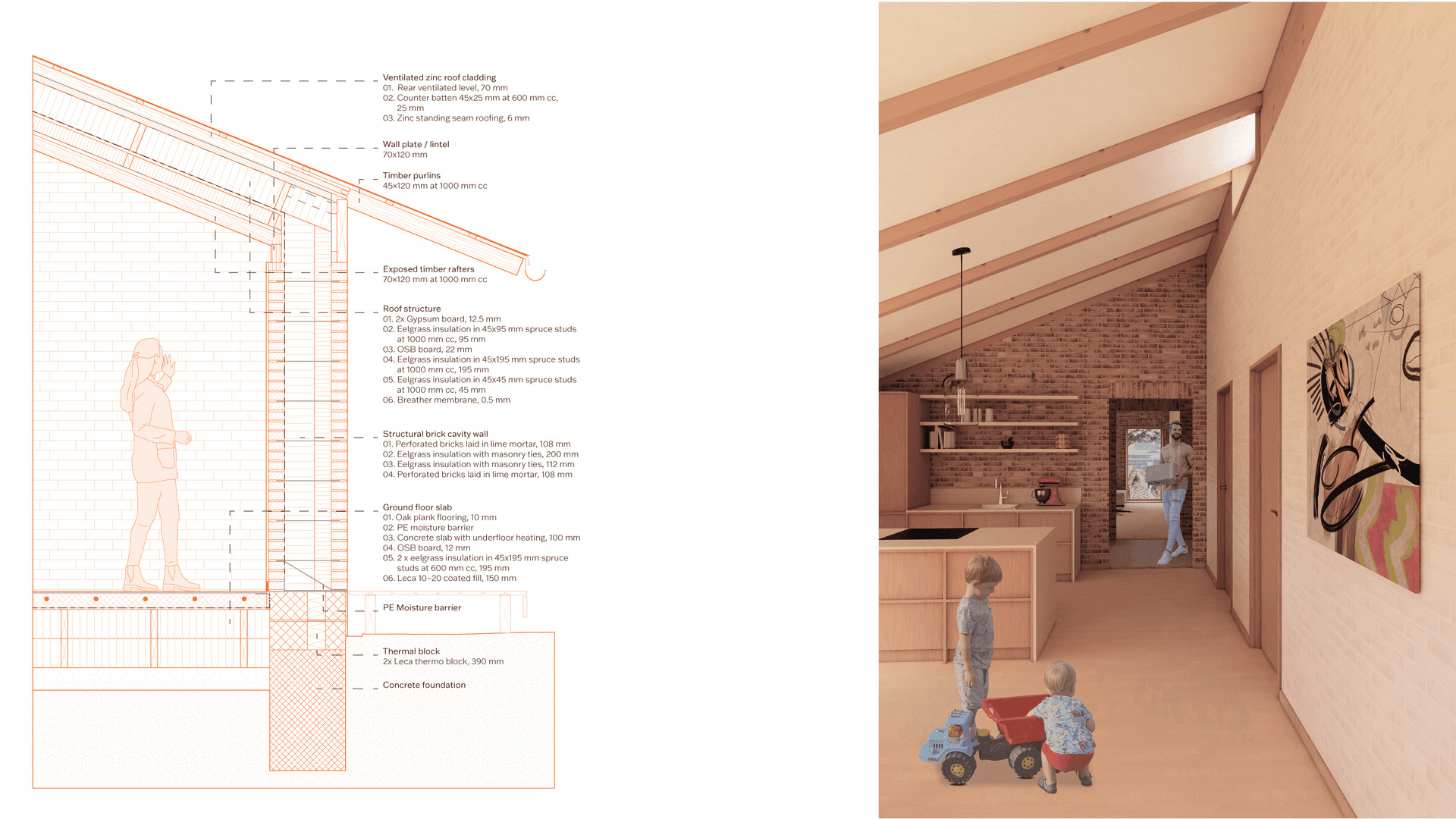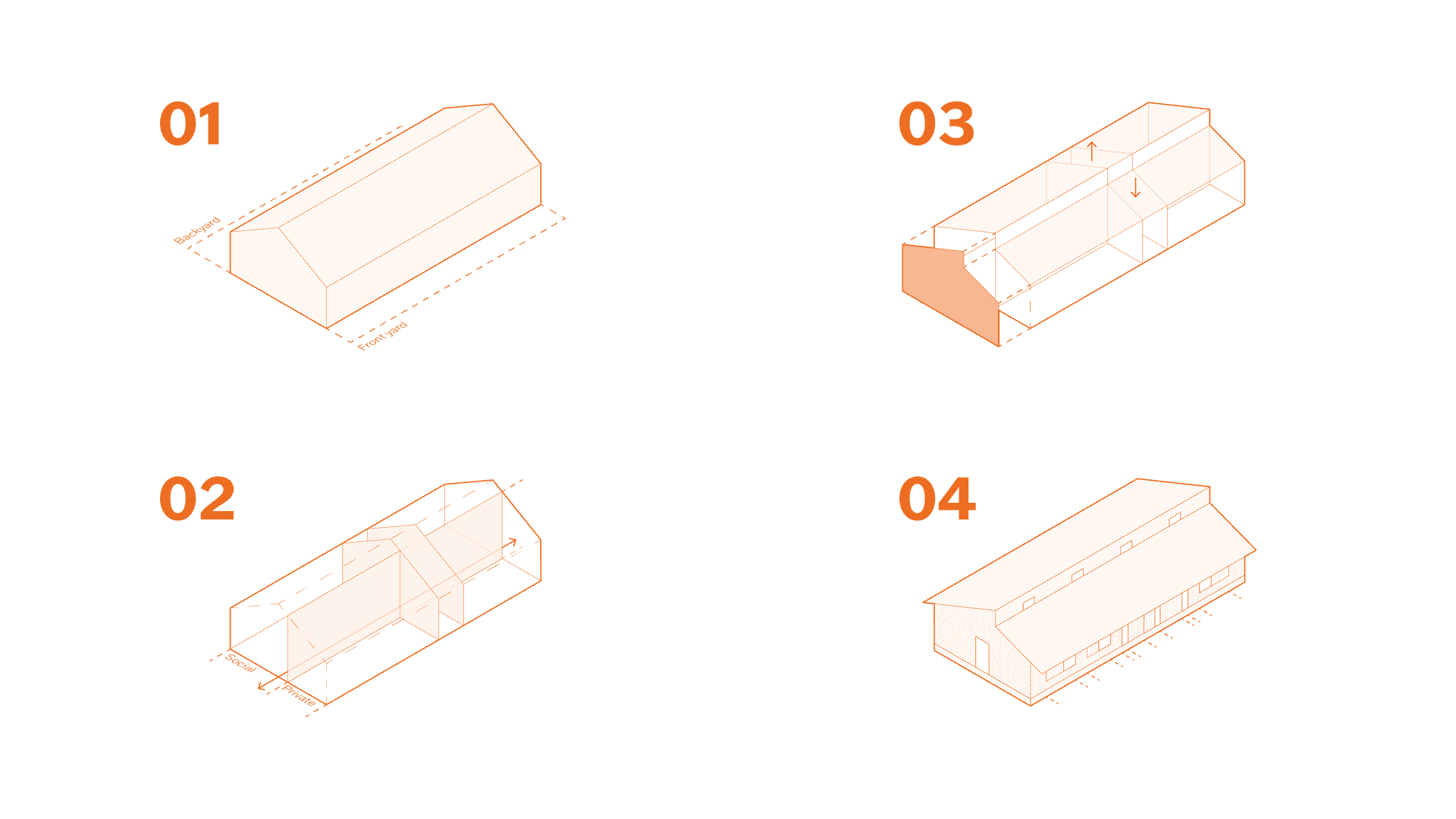 The outcome is The New Paradigm; a flexible and future-oriented interpretation of the parcelhus. It accommodates values such as densification, environmental responsibility, shared living, and downsizing. Designed with spatial generality in mind, the proposal supports adaptability to shifting human needs and diverse contexts. Its lasting relevance is ensured through a strong connection to Danish building traditions and a focus on human experience, expressed through legibility, robustness, tectonic clarity, and material sensibility, all contributing to its lasting, affective qualities.
